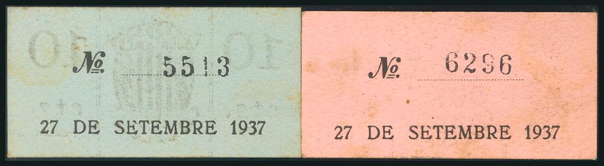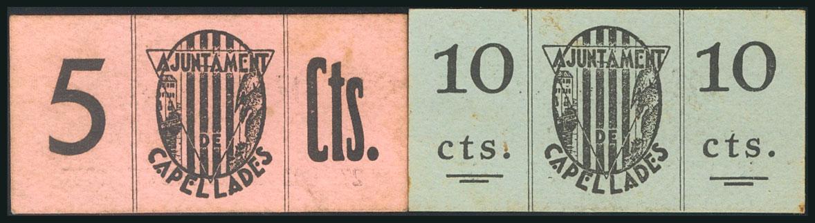 CAPELLADES (BARCELONA). 5 Céntimos y 10 Céntimos. 27 de Septiembre de 1937. (González: 7381/82). Inusual serie completa. MBC.