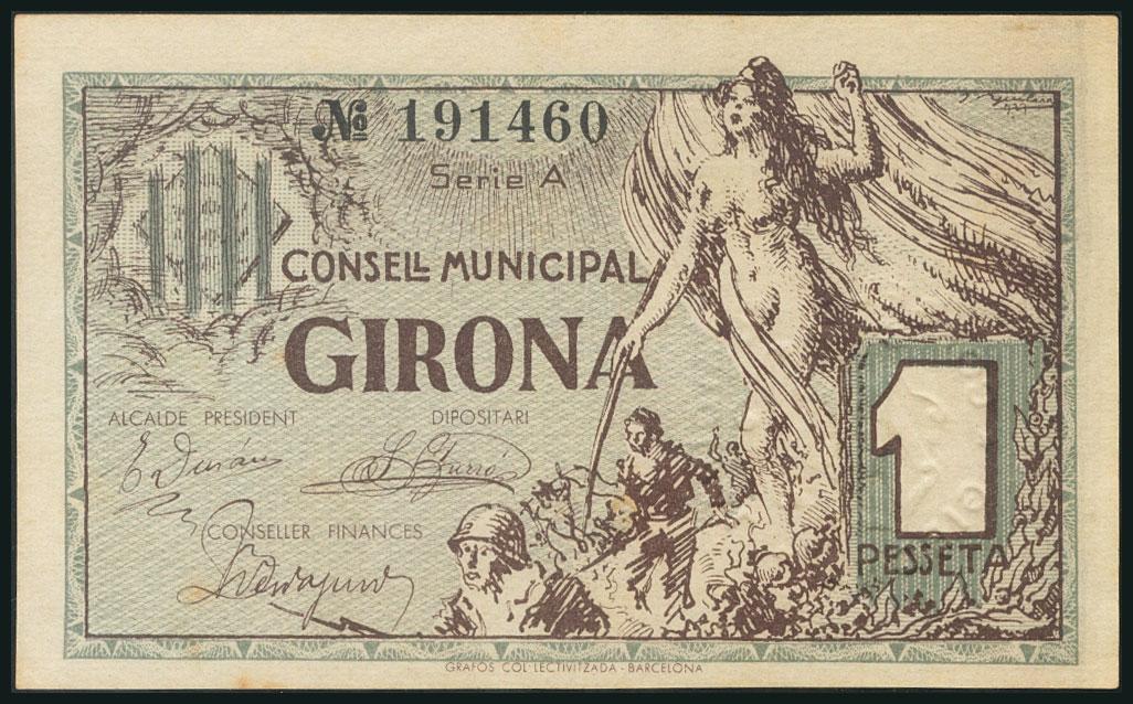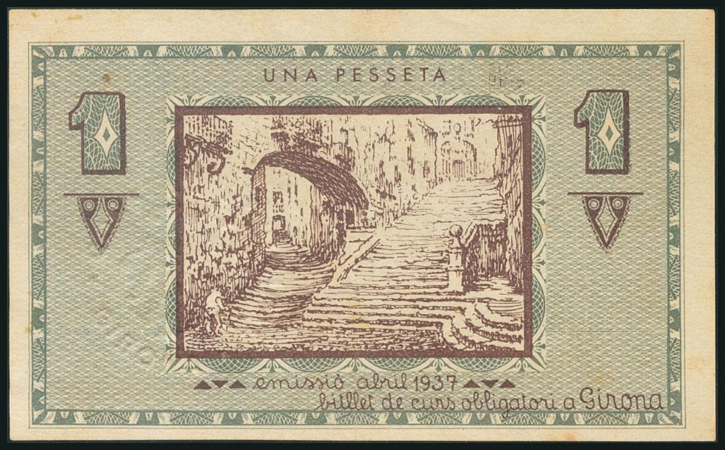 GERONA. 1 Peseta. Abril 1937. Serie A. (González: 8030). EBC.