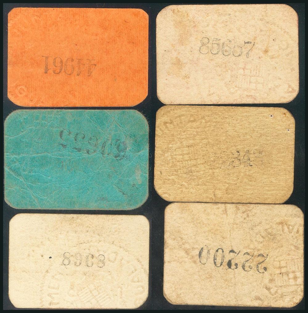 IGUALADA (BARCELONA). 5 Céntimos, 10 Céntimos, 25 Céntimos, 50 Céntimos, 1 Peseta y 2 Pesetas. (1938ca). (González: 8247, 8249, 8250, 8252, 8253, 8254). MBC.