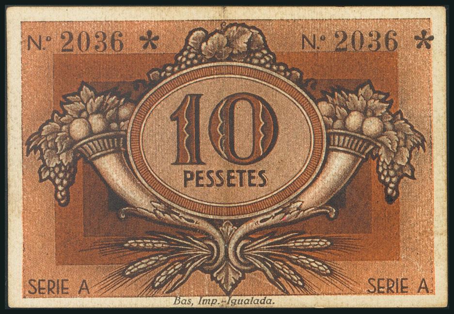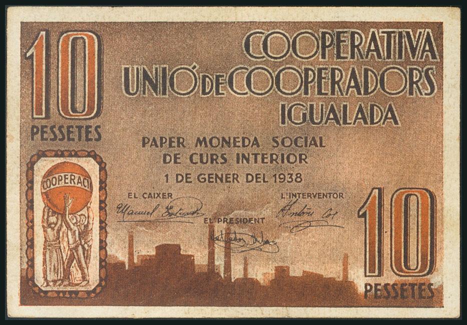 IGUALADA (BARCELONA). 10 Pesetas. 1 de Enero de 1938. Serie A. (González: 8256). MBC+.