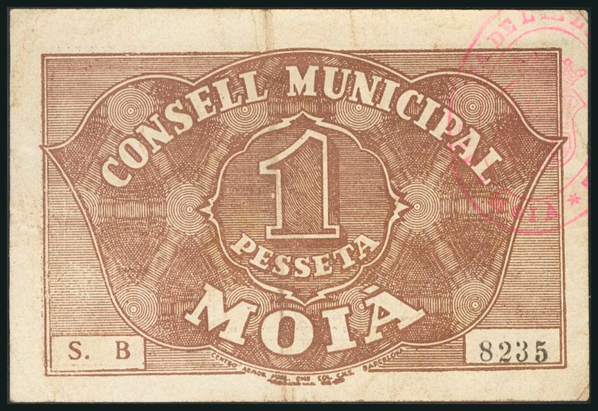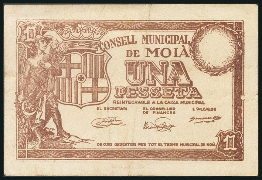 MOIA (BARCELONA). 1 Peseta. Serie B. (González: 8691). MBC.