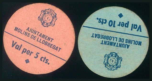 MOLINS DE LLOBREGAT (BARCELONA). 5 Céntimos y 10 Céntimos. (1938ca). (González: 8702/03). Rara serie completa. EBC.