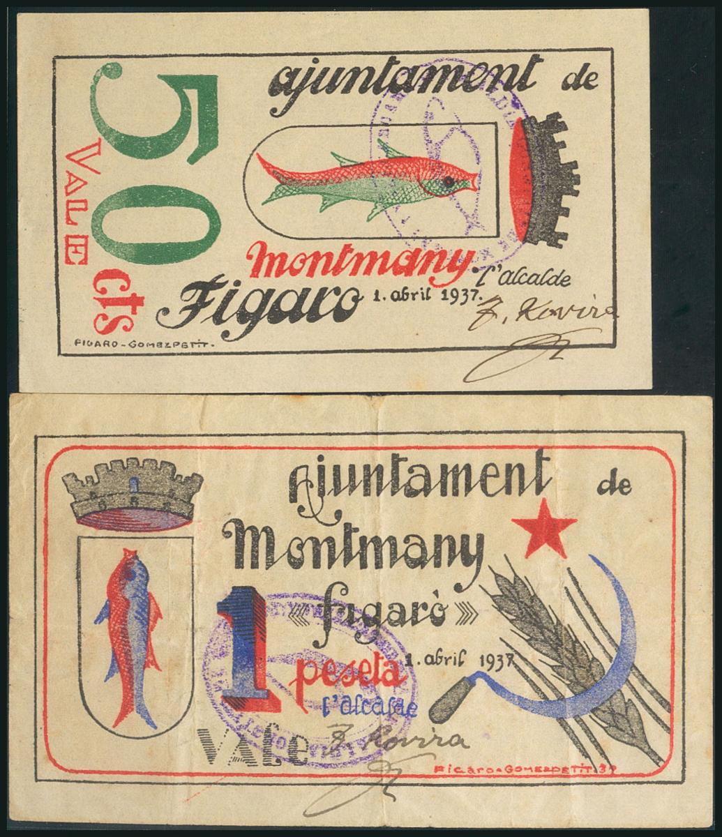 MONTMANY (BARCELONA). 50 Céntimos y 1 Peseta. 1 de Abril de 1937. (González: 8798/99). Raros. EBC+/BC.