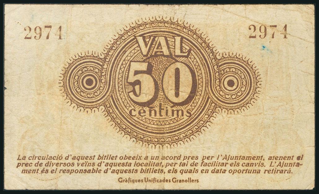 PALAUTORDERA (BARCELONA). 50 Céntimos. (1937ca). (González: 9131). MBC-.