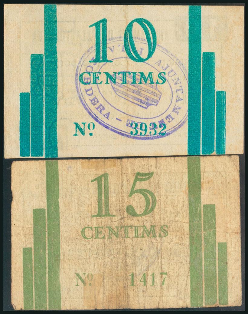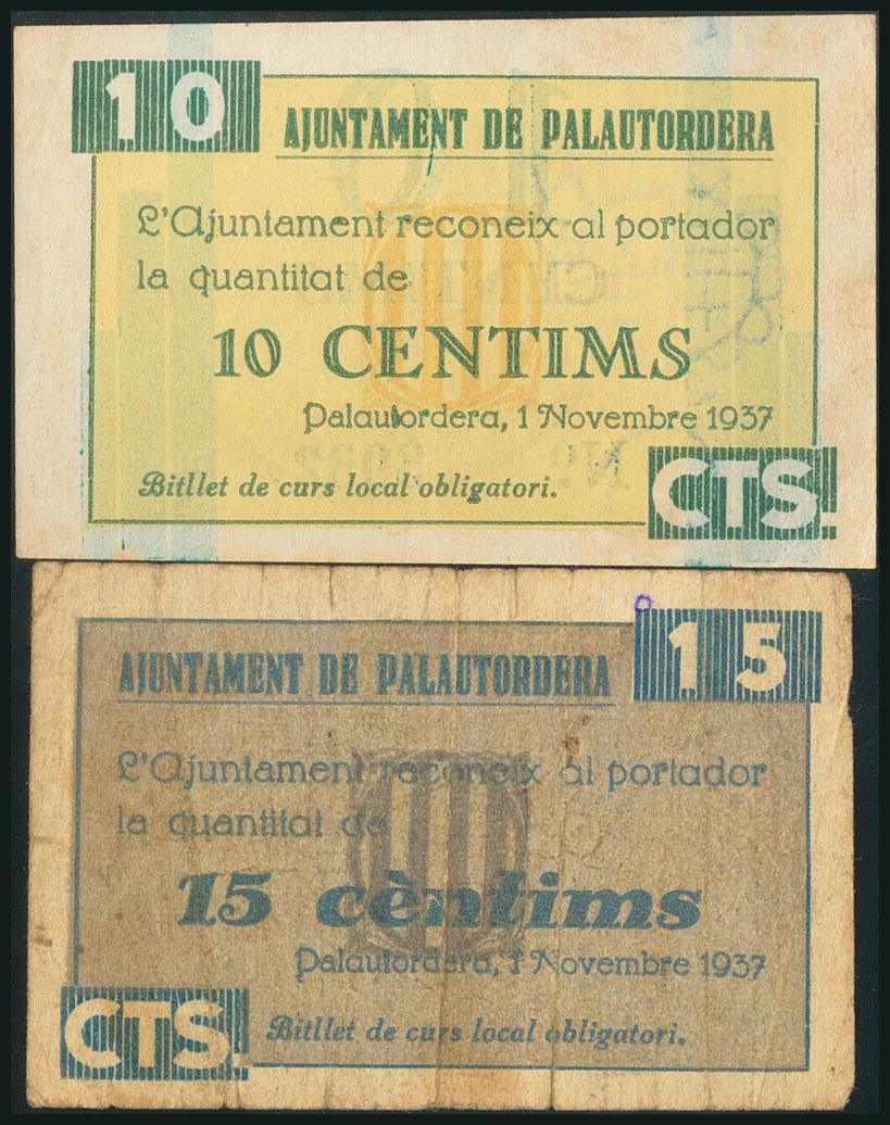 PALAUTORDERA (BARCELONA). 10 Céntimos y 15 Céntimos. 1 de Noviembre de 1937. (González: 9132/33). Rara serie completa. MBC/MBC-.
