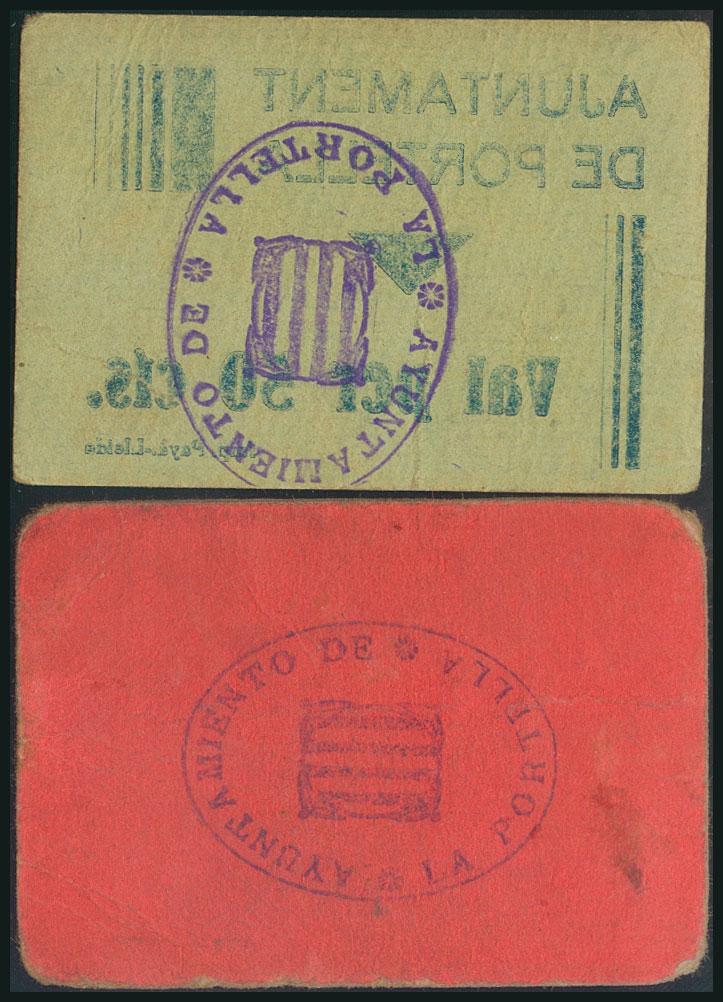 PORTELLA (LERIDA). 50 Céntimos y 1 Peseta. (1937ca). (González: 9408/09). Rarísima serie completa. MBC+.