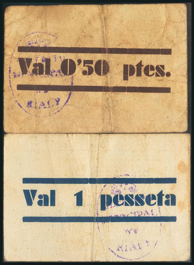 RIALP (LERIDA). 50 Céntimos y 1 Peseta. (1938ca). (González: 9595/96). Serie completa muy rara. BC+/MBC.