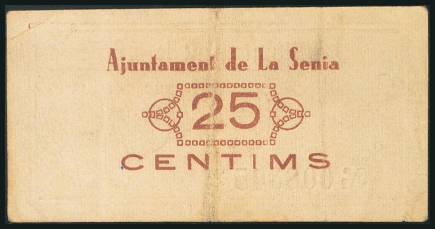 LA SENIA (TARRAGONA). 25 Céntimos. 15 de Julio de 1937. (González: 9940). Inusual. MBC+.