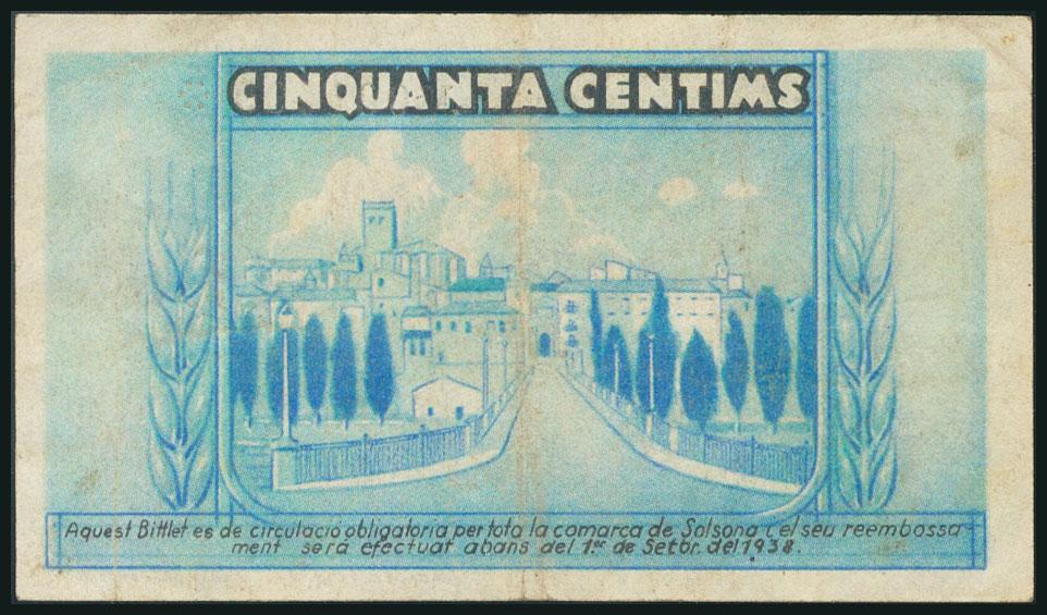 SOLSONA (LERIDA). 50 Céntimos. 1 de Septiembre de 1937. Serie A. (González: 10037). MBC.