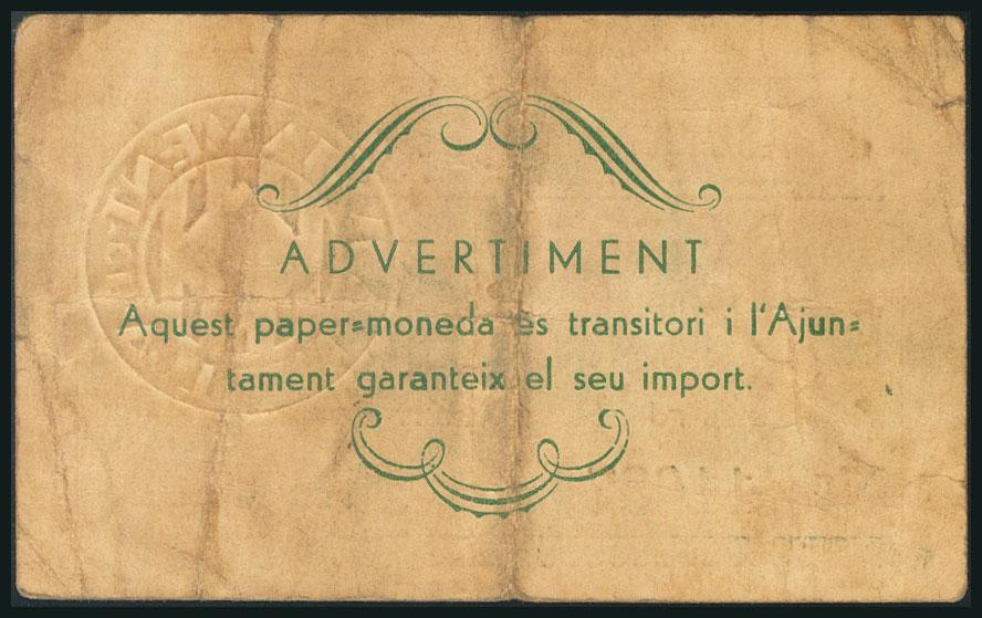 TARREGA (LERIDA). 1 Peseta. Febrero 1937. (González: 10099). BC.