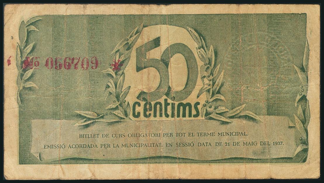 TERRASSA (BARCELONA). 50 Céntimos. 21 de Mayo de 1937. (González: 10132). BC.