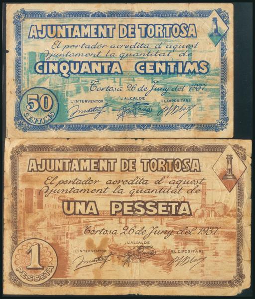 TORTOSA (TARRAGONA). 50 Céntimos y 1 Peseta. 20 de Junio de 1937. (González: 10408/09). Serie completa. BC-.