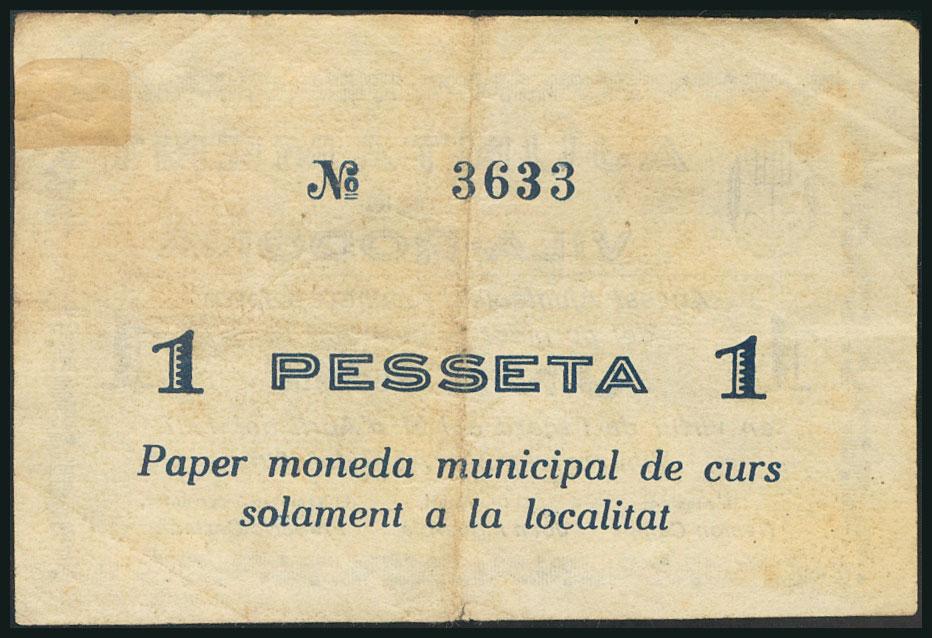 VILA-RODONA (TARRAGONA). 1 Peseta. 24 de Abril de 1937. (González: 10661). Raro. MBC.