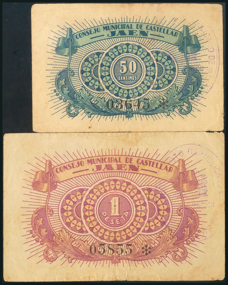 CASTELLAR (JAEN). 50 Céntimos y 1 Peseta. (1938ca). (González: 1769, 1770). Raros. MBC-.