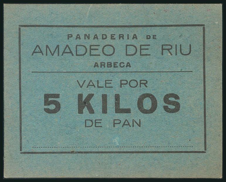 Vale de 5 Kilos de pan de la panadería de Amadeo de Riu, en Arbeca, Lérida. SC-.