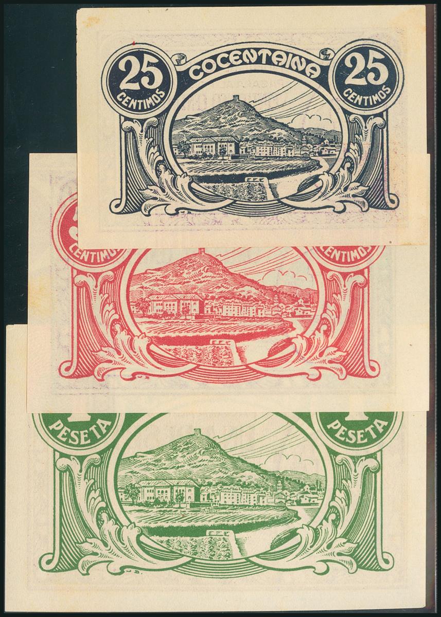 COCENTAINA (ALICANTE). 25 Céntimos, 50 Céntimos y 1 Peseta. 21 de Julio de 1937. Serie A y sin numeración, los tres. (González: 1991/93). Serie completa. EBC+.