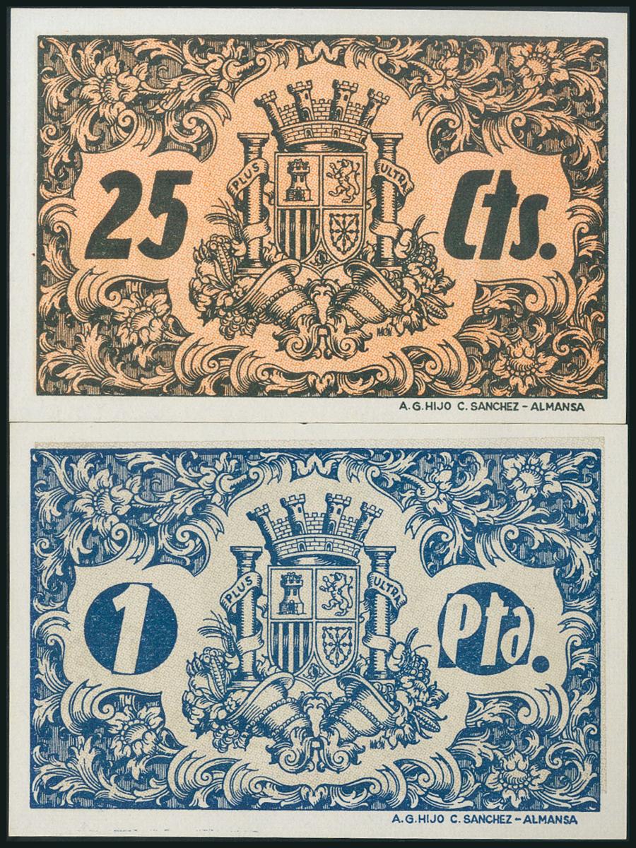 CONQUISTA (CORDOBA). 25 Céntimos y 1 Peseta. (1938ca). Ambos sin numeración. (González: 2018, 2020). SC.