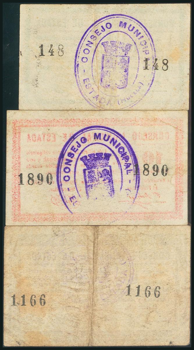 ESTADA (HUESCA). 5 Céntimos, 10 Céntimos y 25 Céntimos. 12 de Agosto de 1937. (González: 2348/50). Rara serie completa. MBC+.