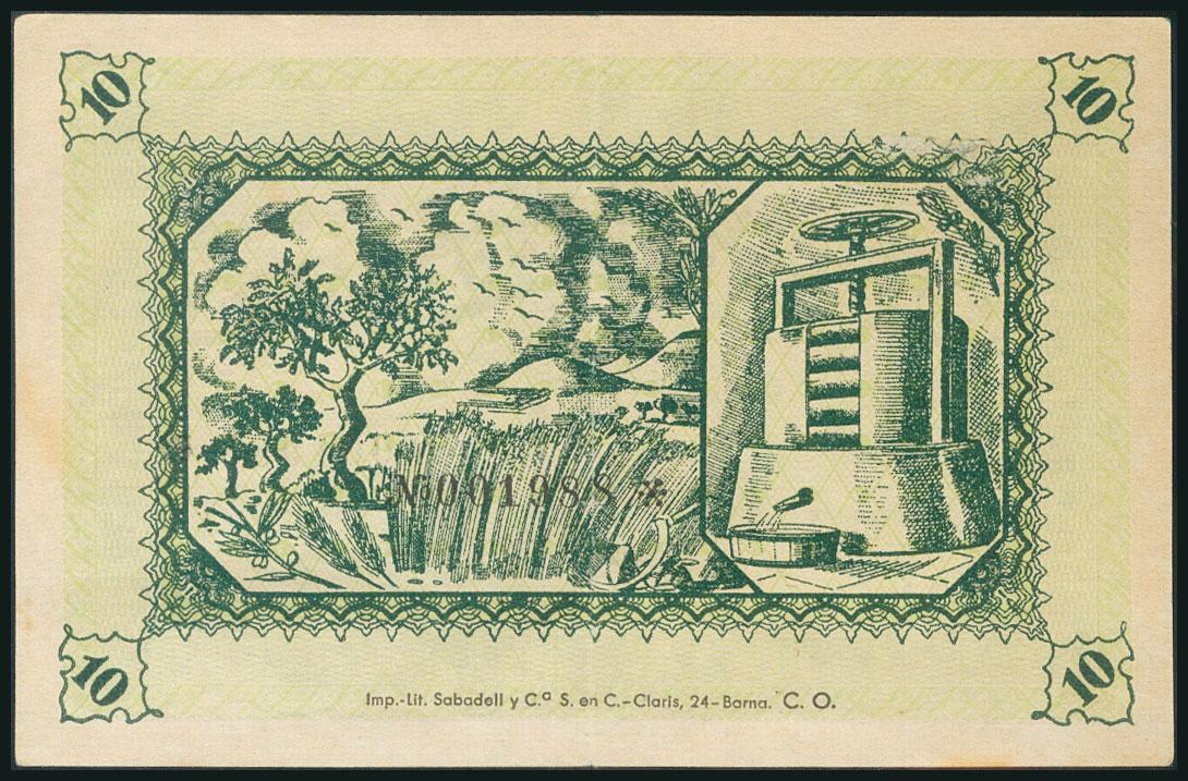 FABARA (ZARAGOZA). 10 Pesetas. 1937. (González: 2392). Rarísimo. EBC.