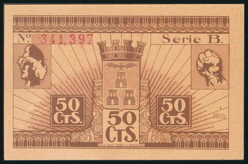 ALBACETE. 50 Céntimos. 8 de Noviembre de 1937. Serie B. (González: 131). SC.