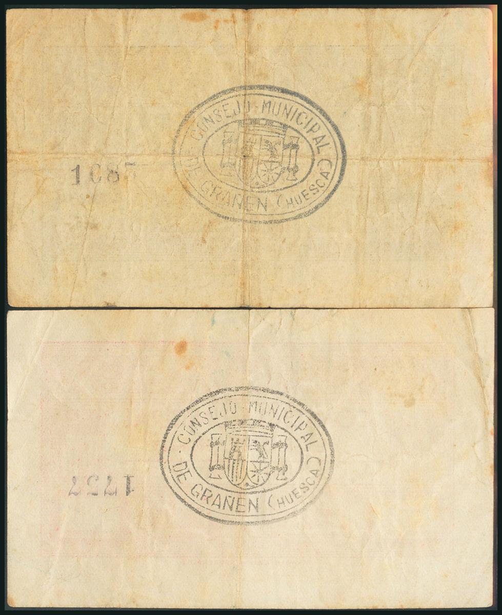 GRAÑEN (HUESCA). 50 Céntimos y 1 Peseta. (1938ca). (González: 2724, 2725). Inusuales. MBC.