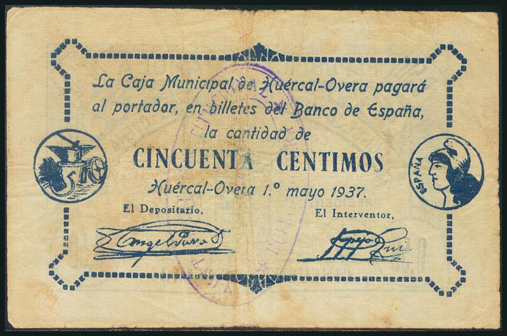 HUERCAL-OVERA (ALMERIA). 50 Céntimos. 1 de Mayo de 1937. (González: 2890). Raro. MBC.