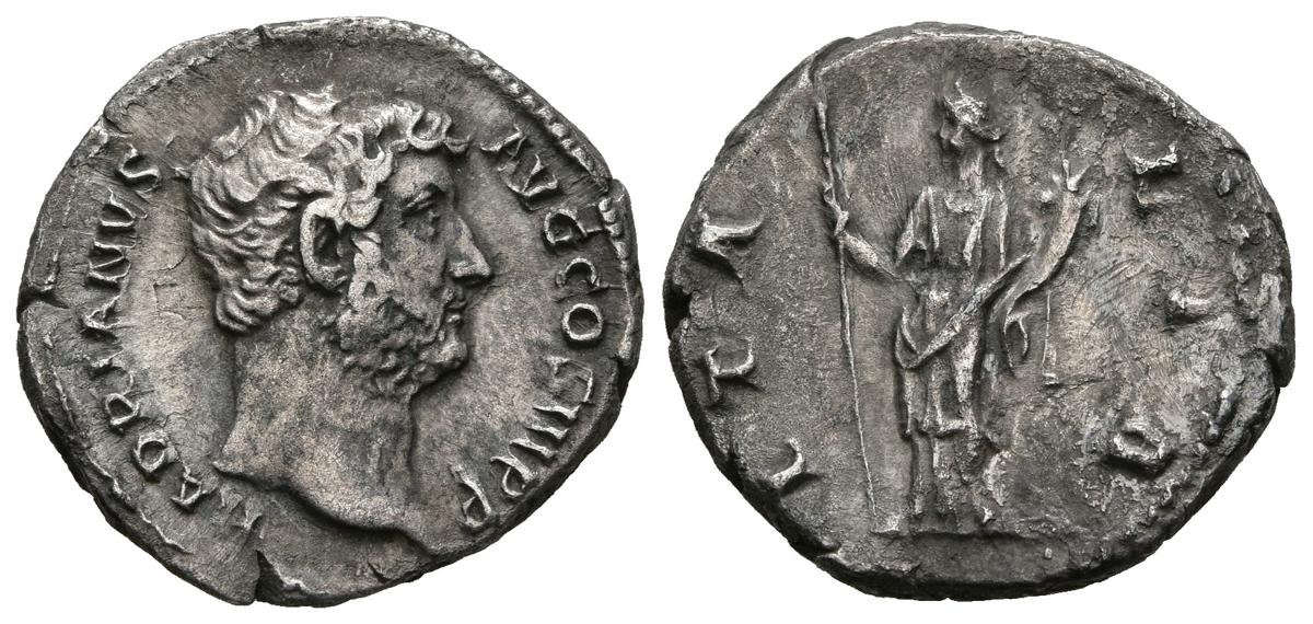 ADRIANO. Denario. (Ar. 2,96g/17mm). 130-133 d.C. Roma. Anv: HADRIANVS AVG COS III P P. Busto desnudo a derecha de Adriano. Rev: ITALIA. Italia estante a izquierda portando cetro y cornucopia. (RIC 1541). EBC-. Precioso ejemplar escaso en esta calidad.