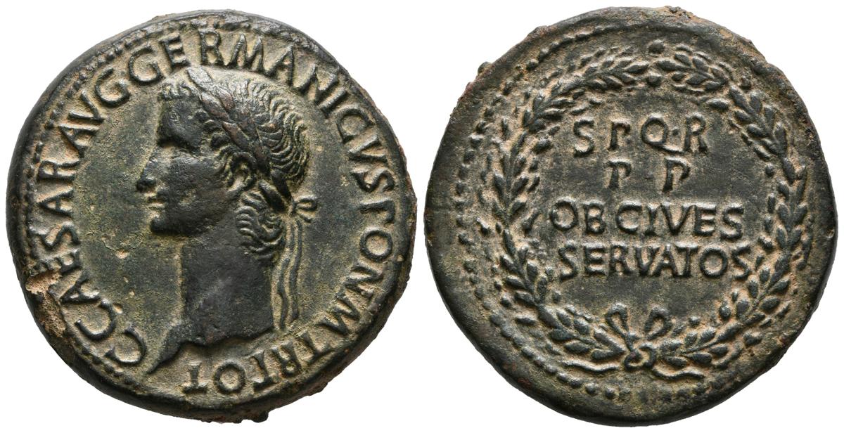 A pesar de su corto mandato, sólo gobernó cuatro años, Calígula tiene el dudoso honor, probablemente junto a Nerón, de ser uno de los emperadores más despiadados y crueles de todo el Imperio. Paradójicamente, la numismática de éste es de una singular importancia ya que desde el punto de vista iconográfico ejerció una clara influencia en los reinados posteriores. El hecho de representar en sus monedas a buena parte de su familia (a su padre Germánico o a su madre Agripina la mayor, por ejemplo) se traduce en un intento de legitimar, mediante éstas, su lugar en el trono imperial y no tanto, como muchas veces se puede pensar en un homenaje a sus progenitores.