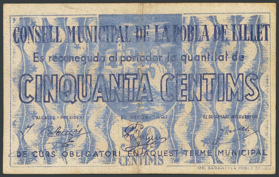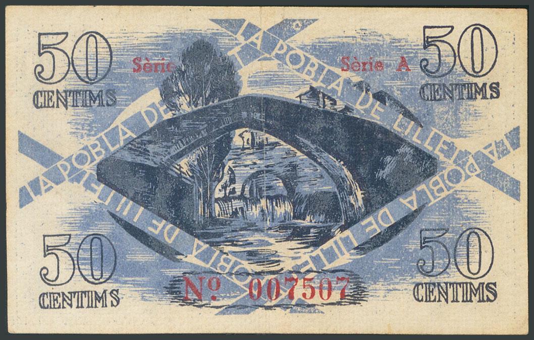 POBLA DE LILLET (BARCELONA). 50 Céntimos. (1937ca). Serie A. (González: 9318). MBC.