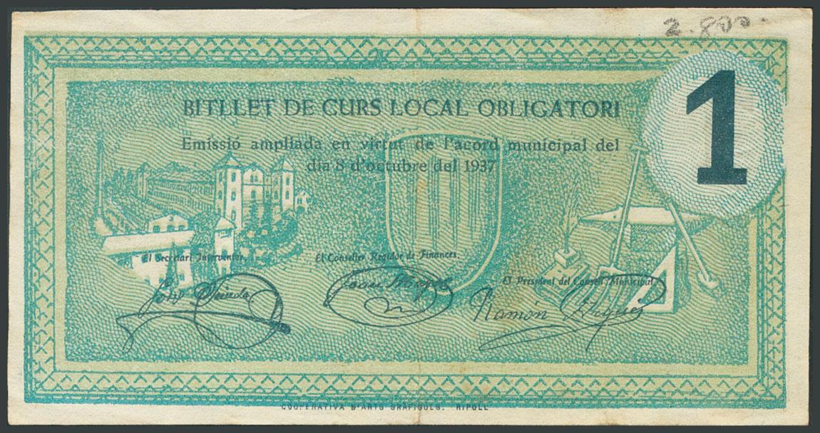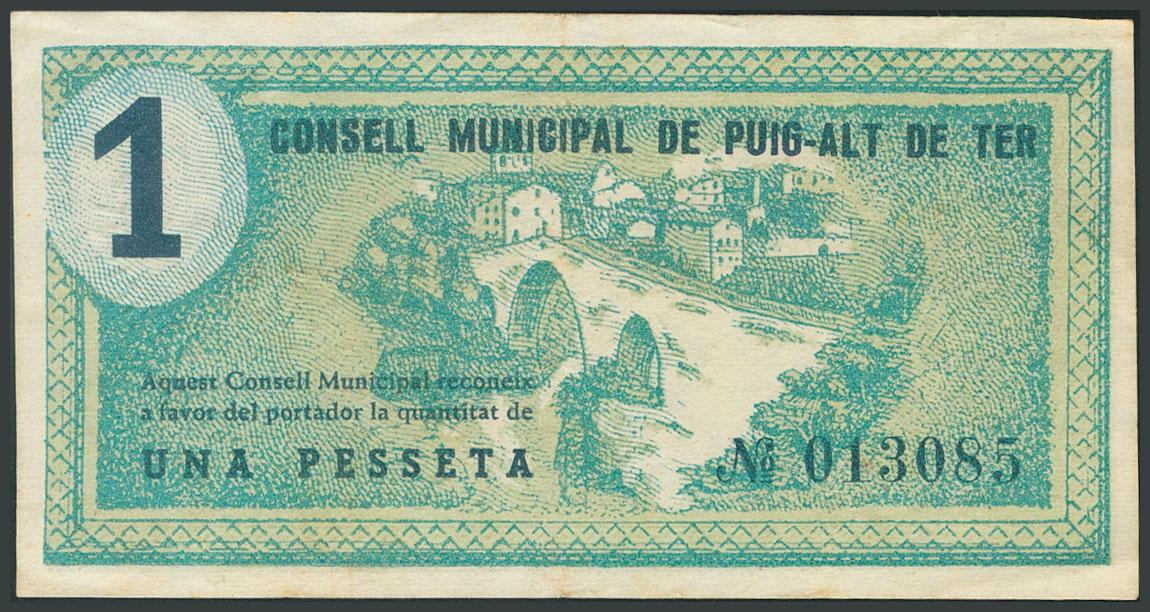 PUIG-ALT DE TER (GERONA). 1 Peseta. 4 de Octubre de 1937. (González: 9479). MBC.