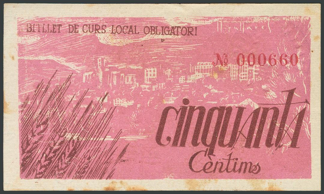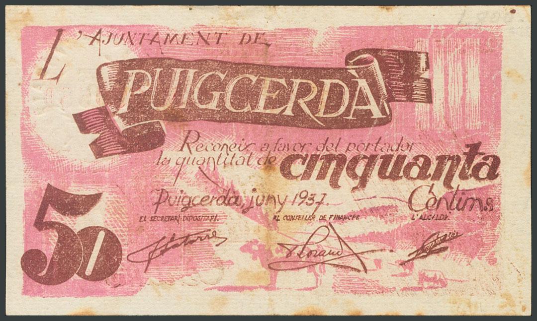 PUIGCERDA (GERONA). 50 Céntimos. Junio 1937. (González: 9487). MBC.