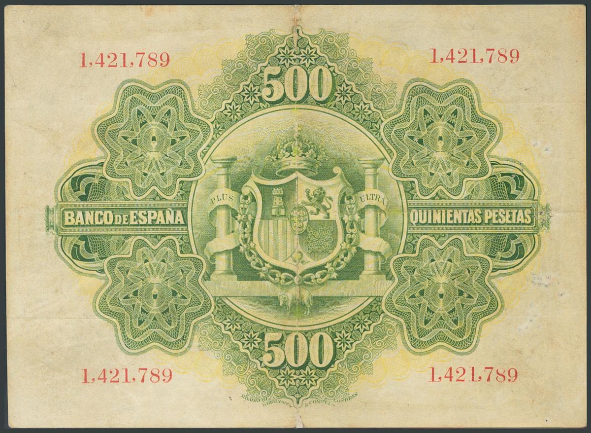 500 Pesetas. 28 de Enero de 1907. Sin serie. (Edifil 2017: 316). Rarísimo, ligera reparación. MBC+.