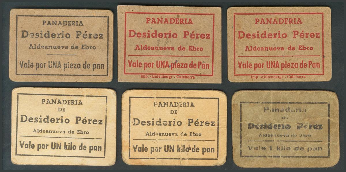 Conjunto de 6 vales de la panadería Desiderio Pérez, en Aldeanueva de Ebro (La Rioja). MBC.