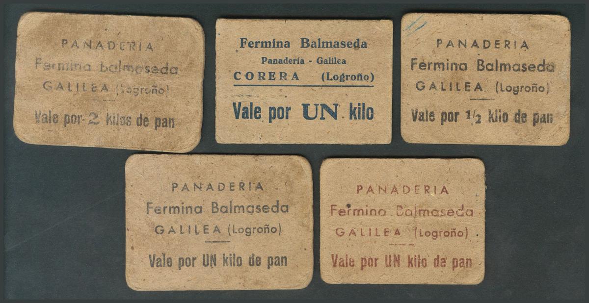 Conjunto de 5 vales de la panadería Fermina Balmaseda, de Galilea (Logroño). MBC.