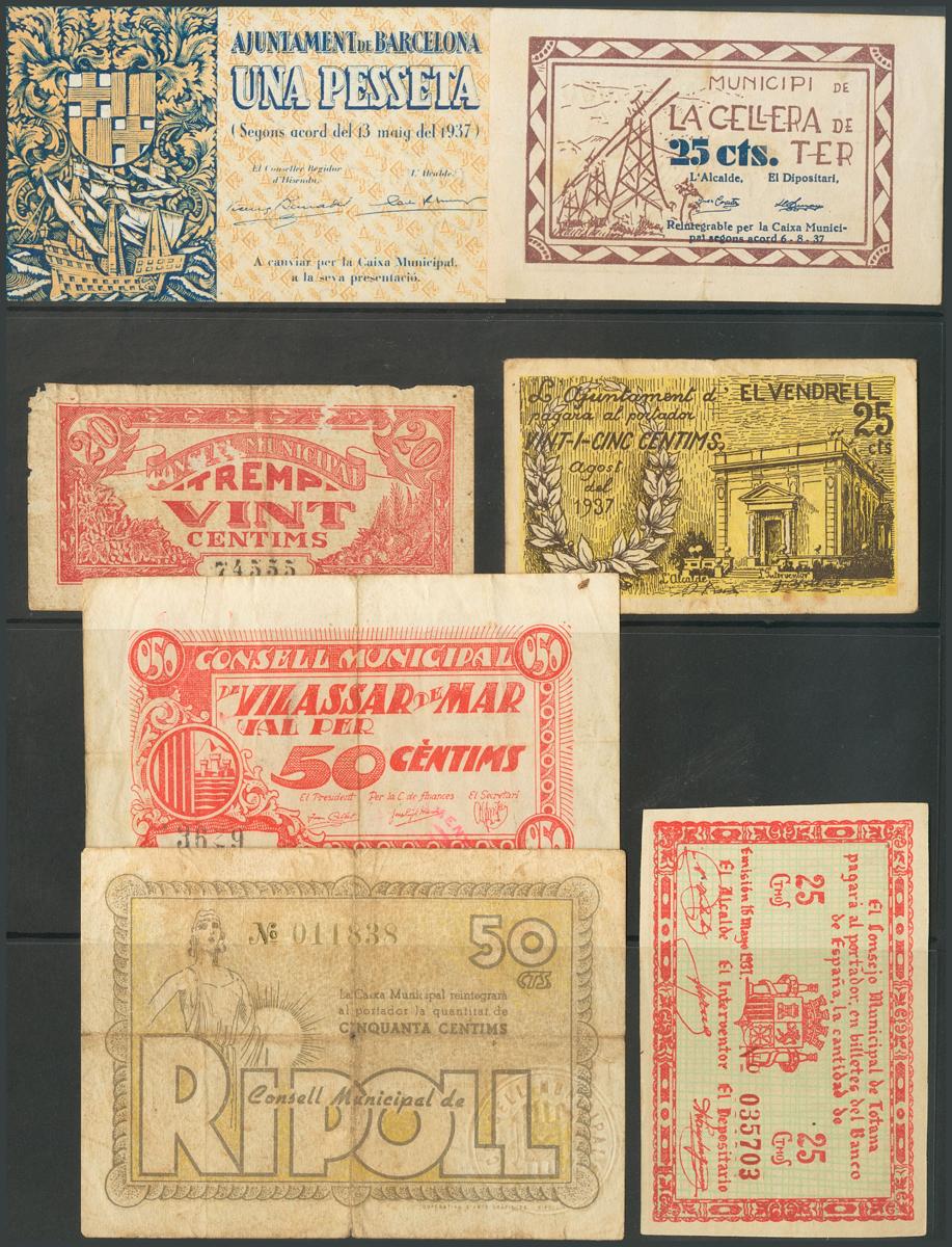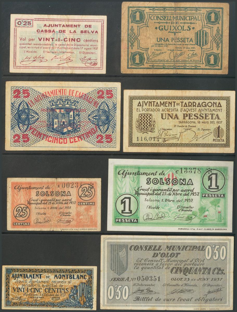 Conjunto de 15 billetes de la Guerra Civil, de diversas localidades. A EXAMINAR.