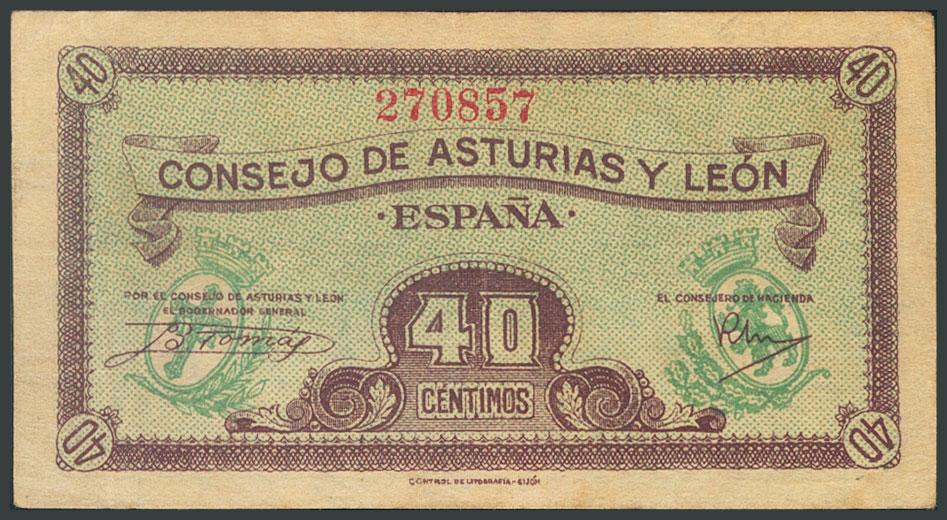 40 Céntimos. 1937. Asturias y León. Sin serie. (Edifil 2017: 395). MBC+.