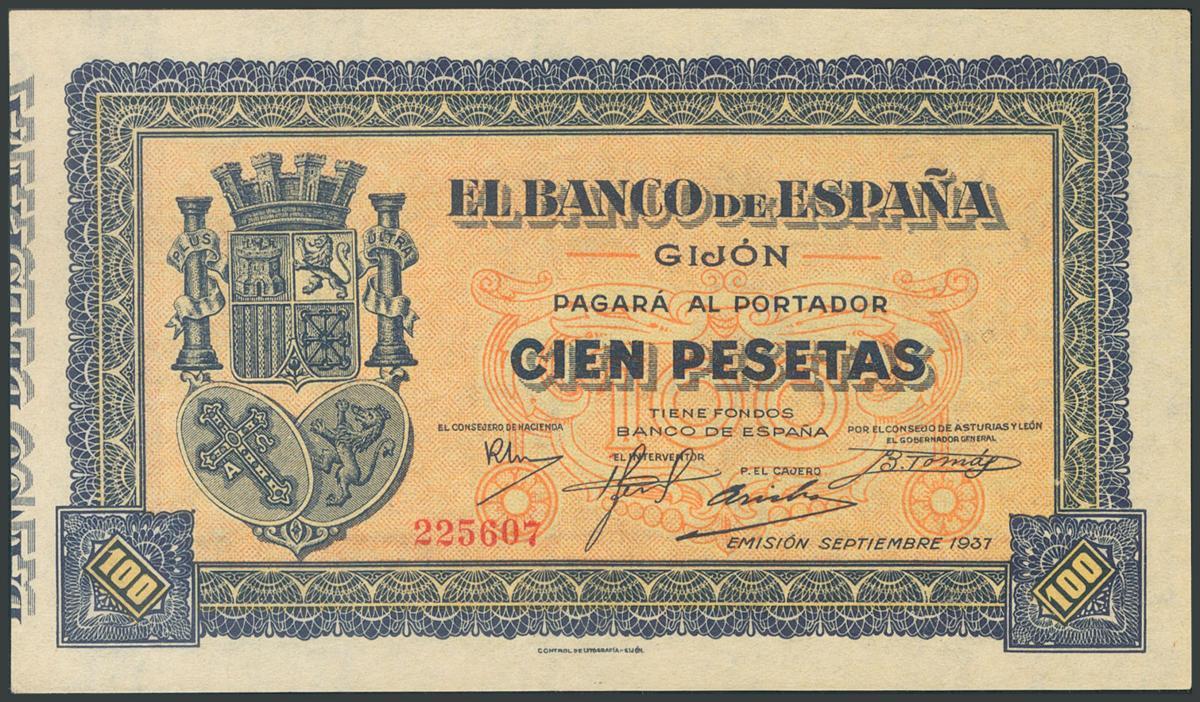 100 Pesetas. 1937. Asturias y León. Sin serie. (Edifil 2017: 399). SC-.