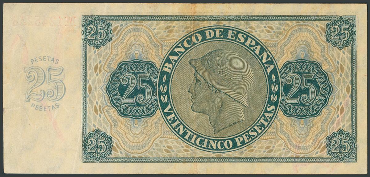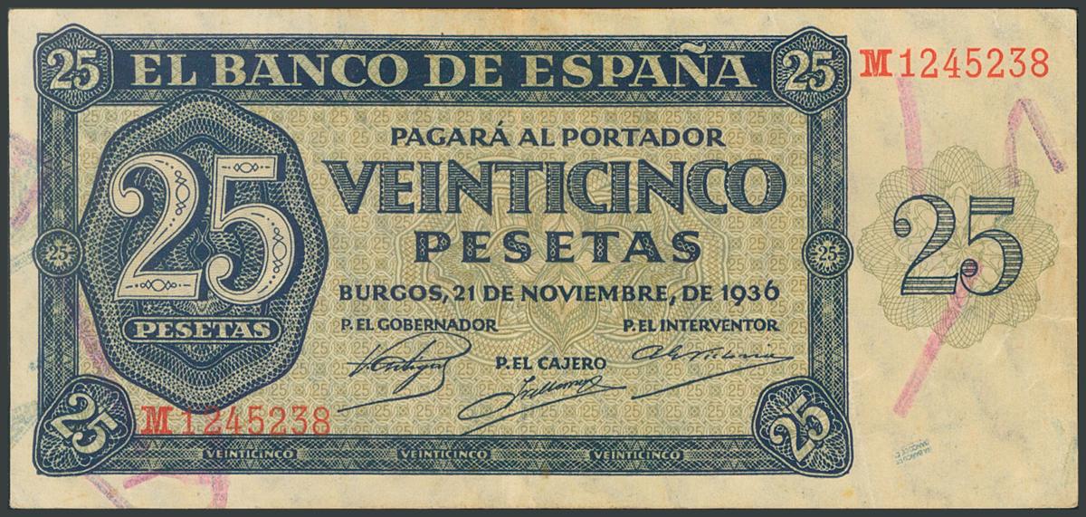 25 Pesetas. 21 de Noviembre de 1936. Serie M. (Edifil 2017: 419a). MBC+.