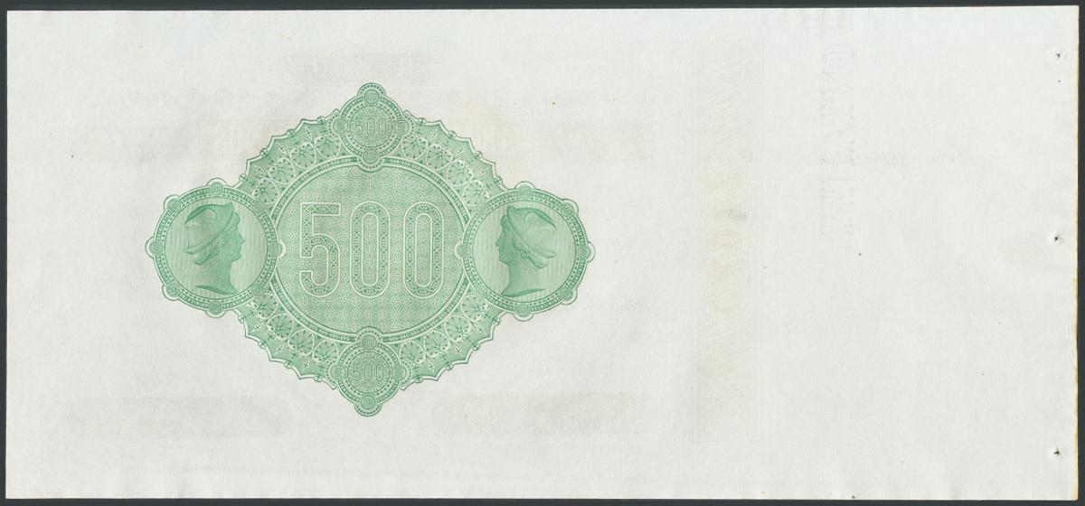 500 Reales de Vellón. (1870ca). Aramburu Hermanos, Cádiz (matriz a la izquierda). Para entender mejor la contextualización de este billete recomendamos la obra "Obligaciones, vales y documentos puestos en circulación como papel moneda en España", de Don Ramón Cobo Huici. SC-