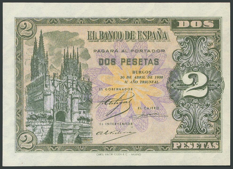 2 Pesetas. 30 de Abril de 1938. Serie L. (Edifil 2017: 429a). Apresto original. SC.