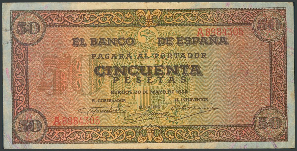 50 Pesetas. 20 de Mayo de 1938. Serie A. (Edifil 2017: 431). MBC+.