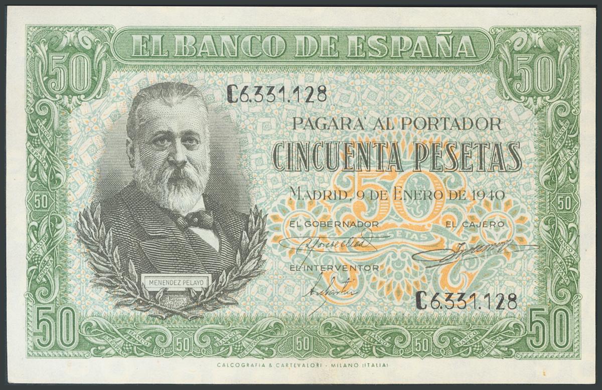 50 Pesetas. 9 de Enero de 1940. Serie C. (Edifil 2017: 437a). Conserva todo su apresto original. SC-.
