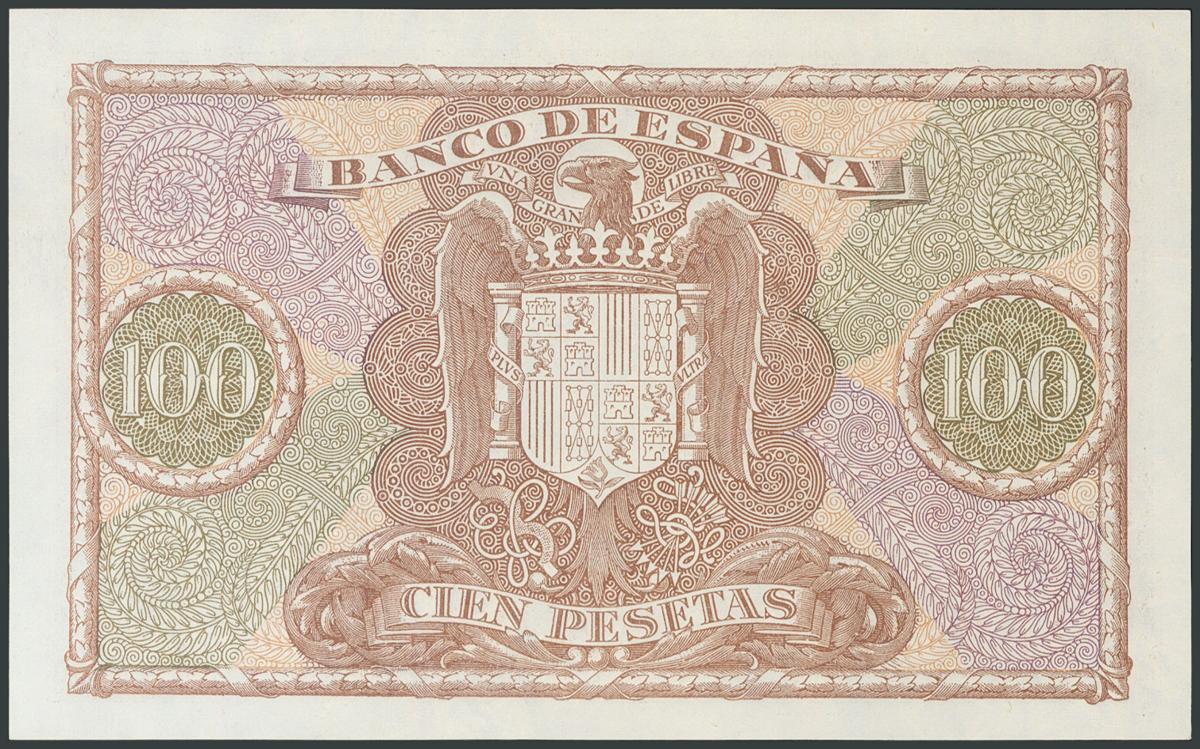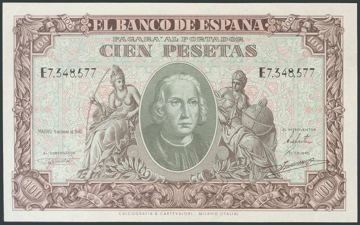 100 Pesetas. 9 de Enero de 1940. Serie E. (Edifil 2017: 438a). Inusual en esta conservación, apresto original. SC.