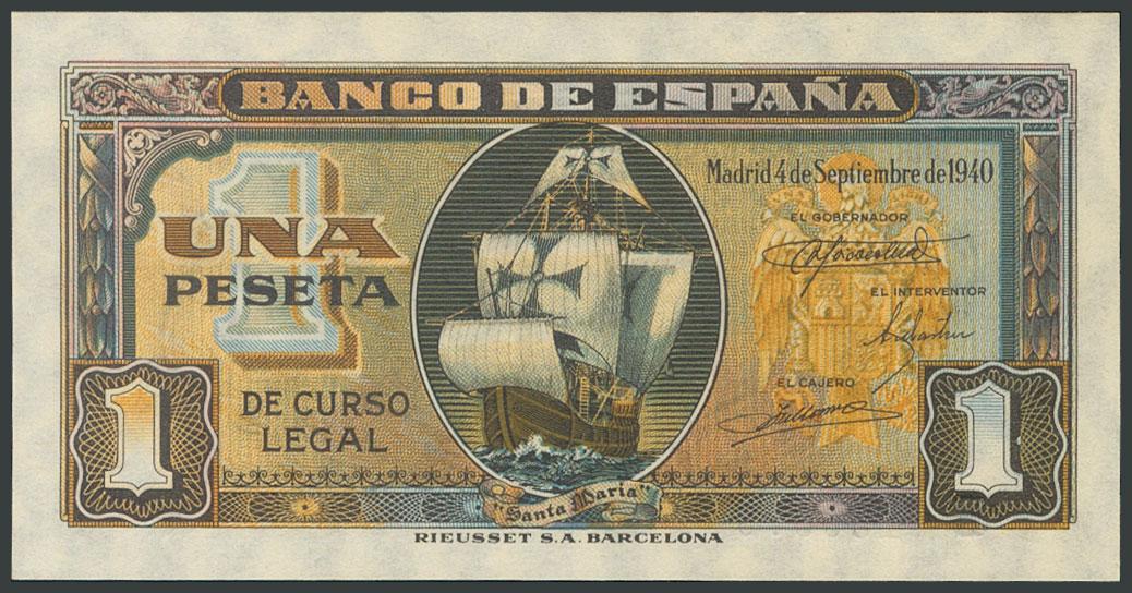 1 Peseta. 4 de Septiembre de 1940. Serie B. (Edifil 2017: 442a). Apresto original. SC.