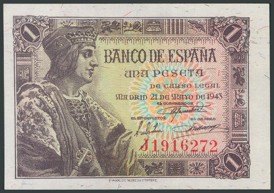 1 Peseta. 21 de Mayo de 1943. Serie J. (Edifil 2017: 447a). Apresto original. SC.