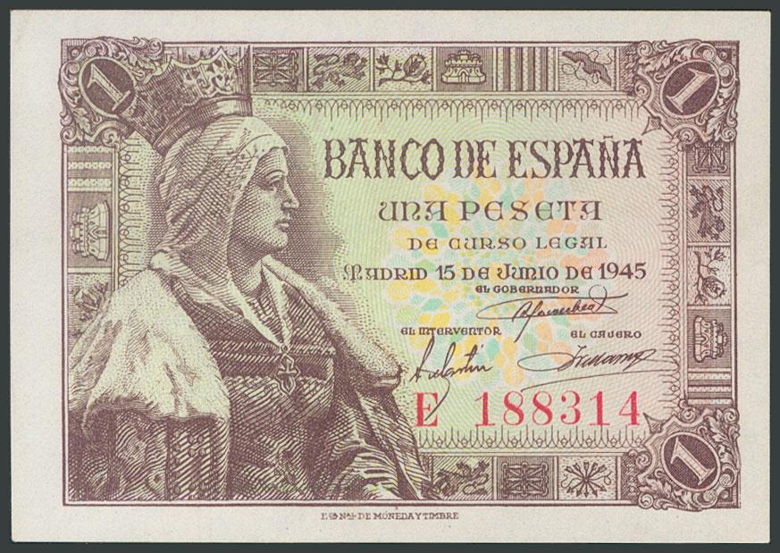 1 Peseta. 15 de Junio de 1945. Serie E. (Edifil 2017: 448a). Apresto original. SC-.