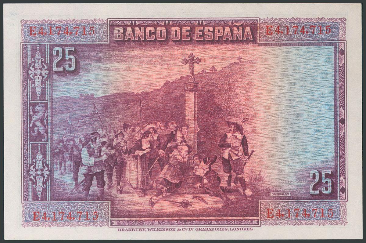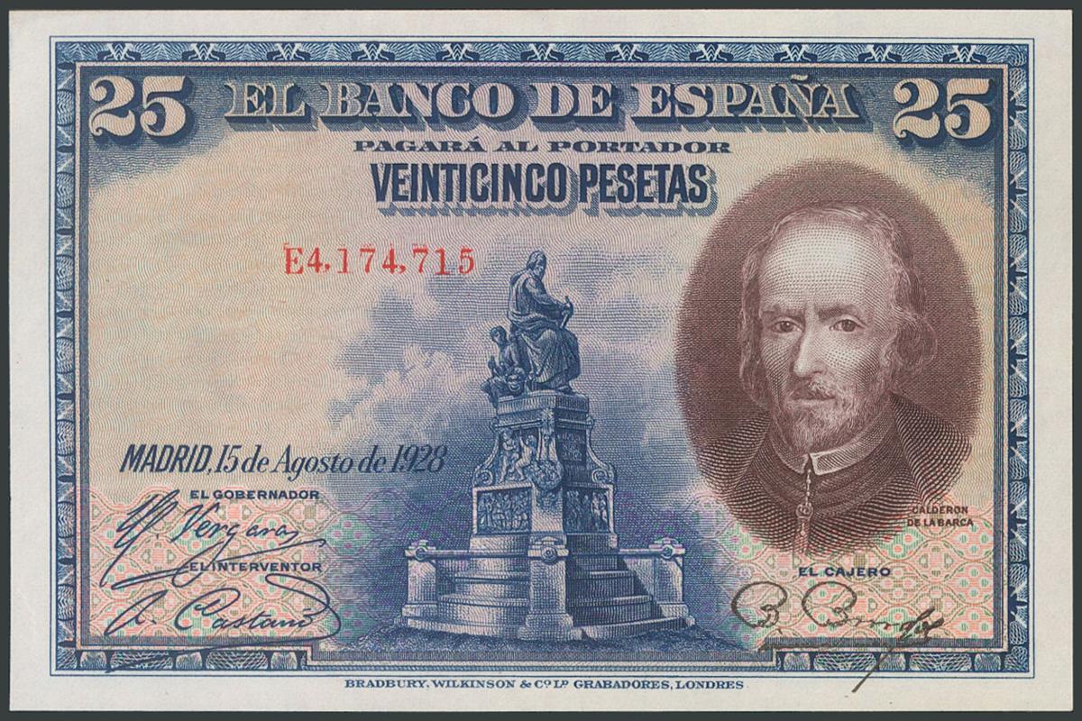 25 Pesetas. 15 de Agosto de 1928. Serie E. (Edifil 2017: 353). Apresto original. SC-.