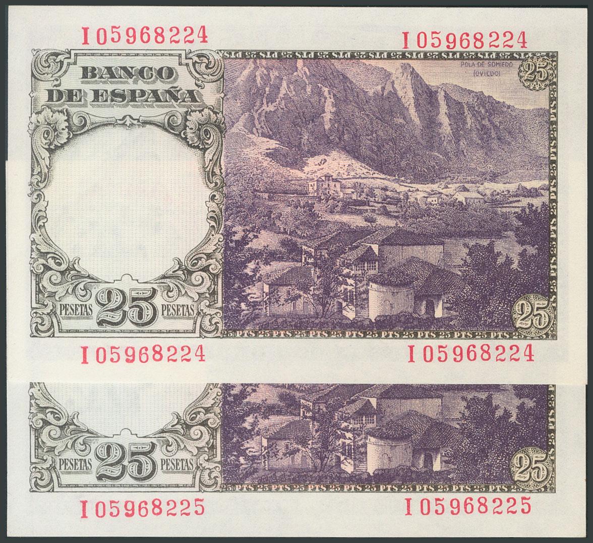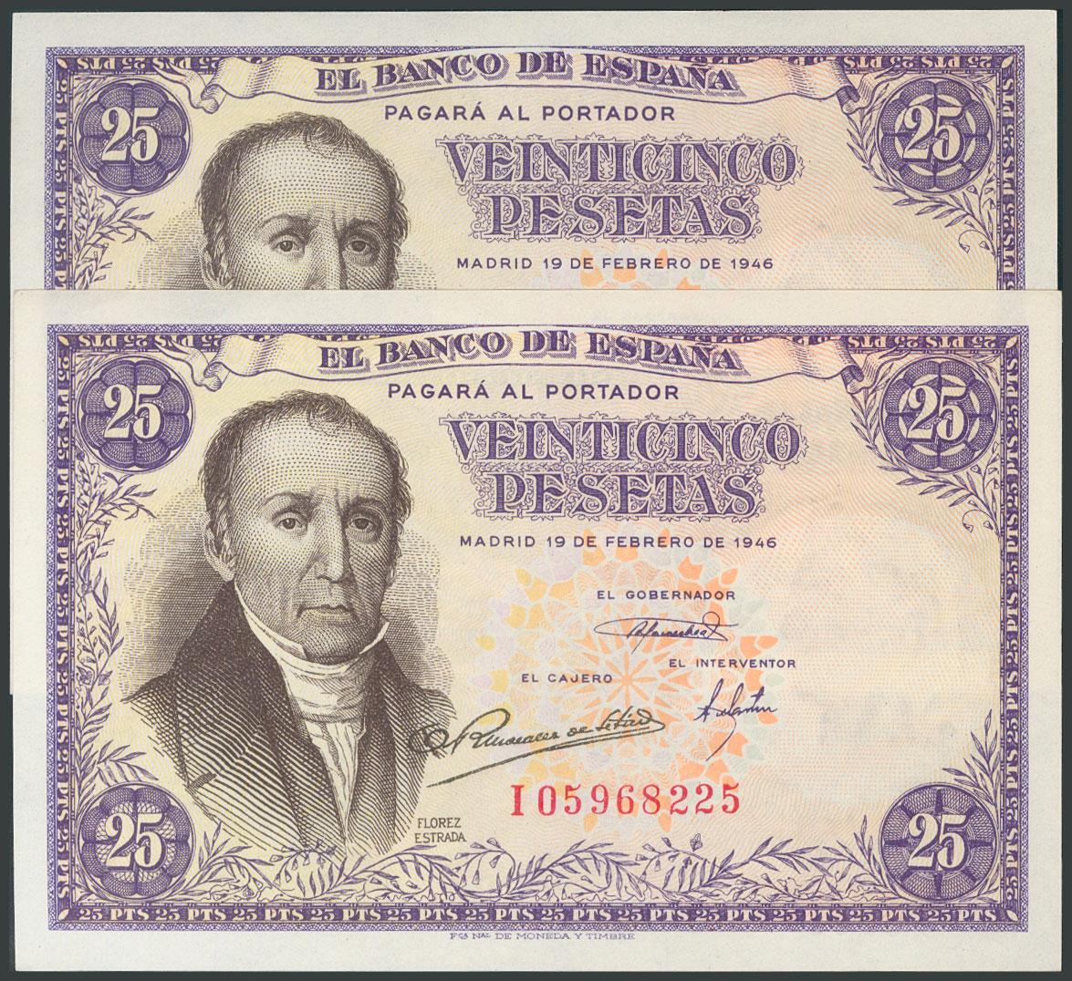25 Pesetas. 19 de Febrero de 1946. Pareja correlativa. Serie I. (Edifil 2017: 450a). Apresto original. SC.