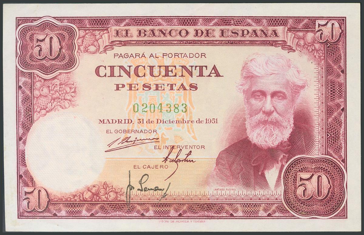 50 Pesetas. 31 de Diciembre de 1951. Sin serie. (Edifil 2017: 462). Apresto original. SC-.