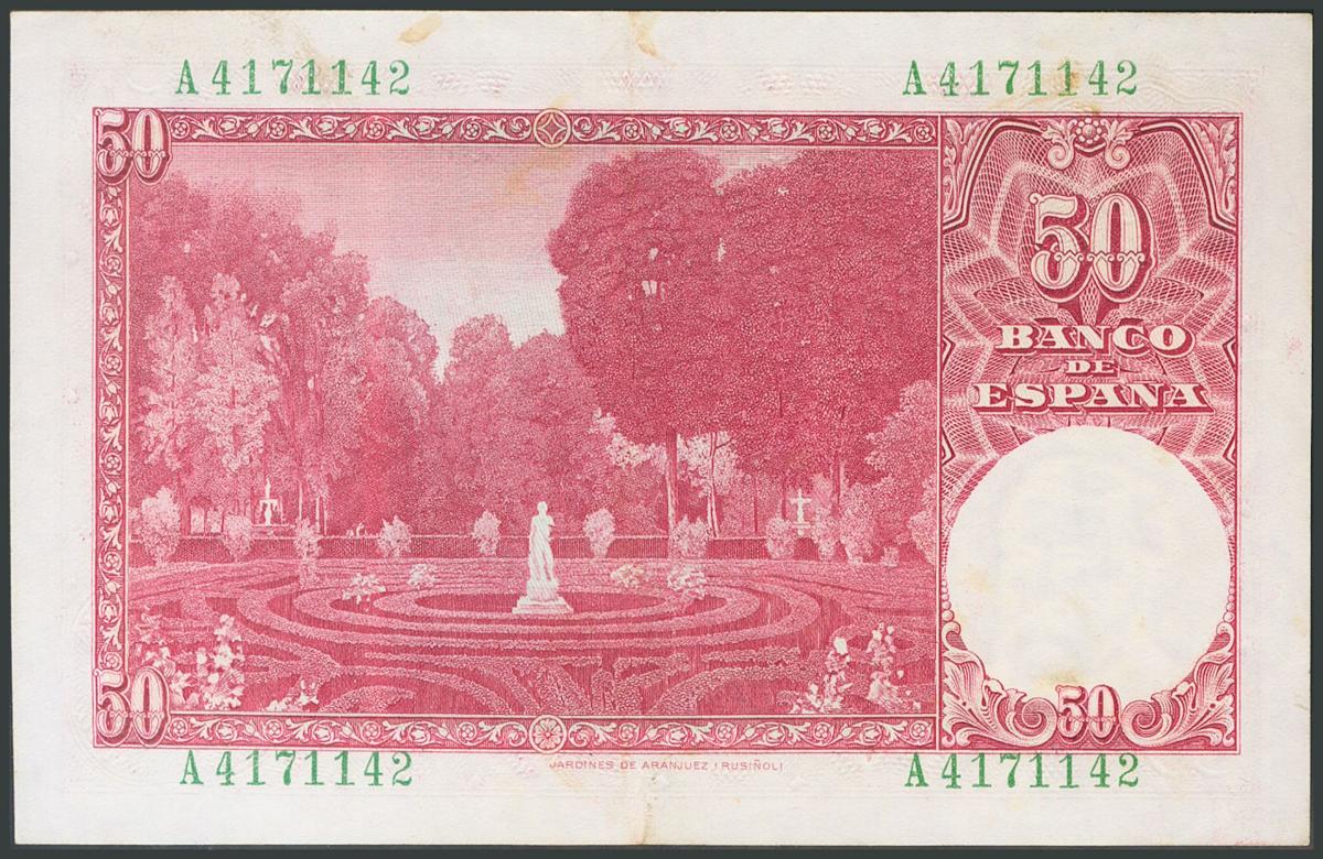 50 Pesetas. 31 de Diciembre de 1951. Serie A. (Edifil 2017: 462a). Conserva todo su apresto original. EBC.